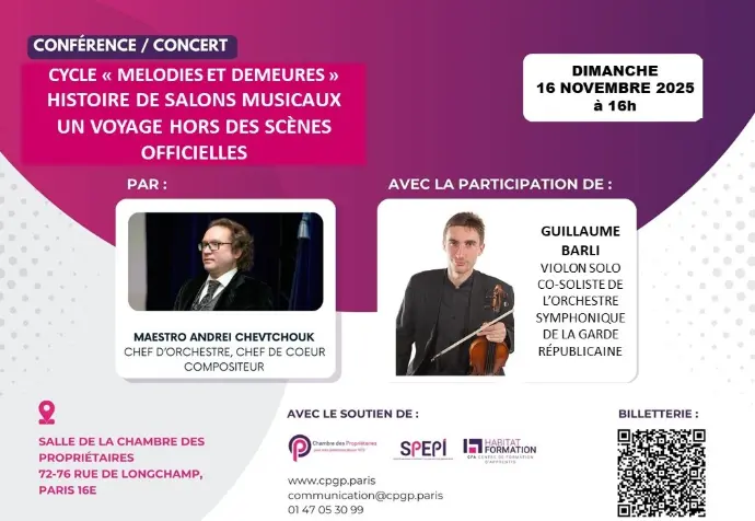Plongez dans l’atmosphère des salons musicaux français avec le Maestro Andrei Chevtchouk – chef d’orchestre, chef de chœur, compositeur et pianiste accompagnateur et le violoniste Guillaume Barli, violoniste virtuose, violon solo et co-soliste de l’Orchestre de la Garde Républicaine.